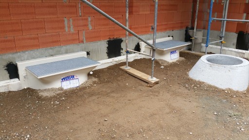 Na osobnej aukcji można dokupić przyłącze z syfonem lub bez syfonu (syfon widoczny u dołu doświetlacza na zdjęciu obok) oraz klej - uszczelniacz do łączenia doświetlacza z murem.