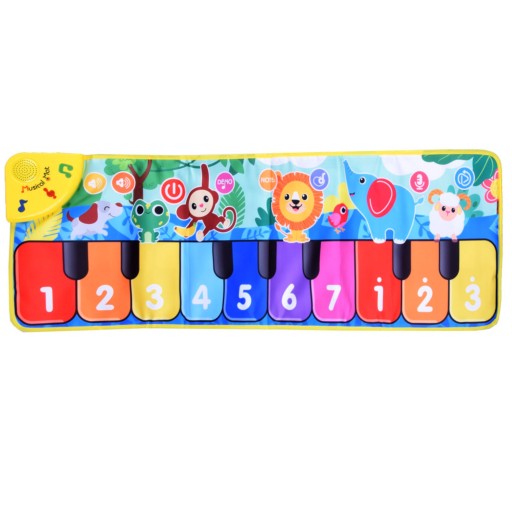 Mata posiada duże, kolorowe klawisze w kształcie pianina, które reagują na dotyk. Każdy klawisz wydaje dźwięk muzyczny, co pozwala dziecku na tworzenie swojej własnej melodii. Dodatkowo, każdy klawisz oznaczony jest cyfrą, co pomaga w nauce liczenia.