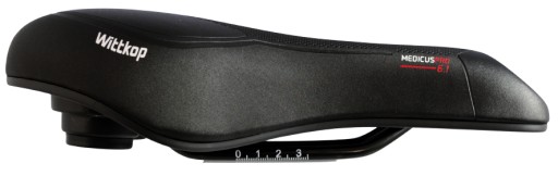 Żelowe siodełko marki Wittkop, model Medicus 6.1 PRO GEL trekking. Siodełko niemieckiego producenta zostało opracowane przez słynnego chirurga ortopedę dr Torsten Werle. Siodło stworzone z myślą o wygodzie i nowoczesnym designie. Twórca na podstawie analizy ludzkiego ciała w ruchu rowerzysty zaprojektował siodło dzieląc na pięć stref, które mają za zadanie zapewnić wysoki komfort podczas dynamicznej jazdy. To siodełko świetnie tłumi drgania.