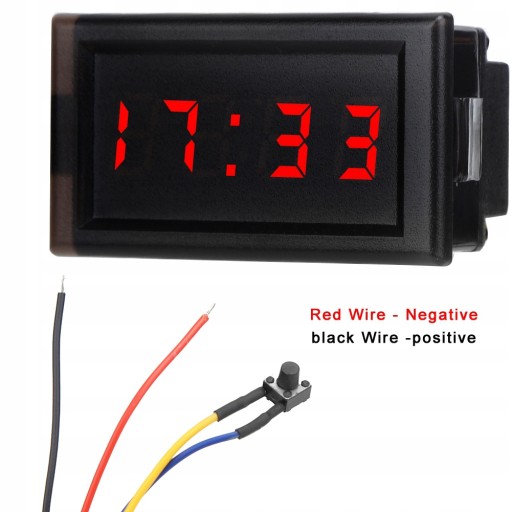 Po podłączeniu do zasilania czerwonego dodatniego i czarnego ujemnego złącza, zostanie wyświetlony czas.