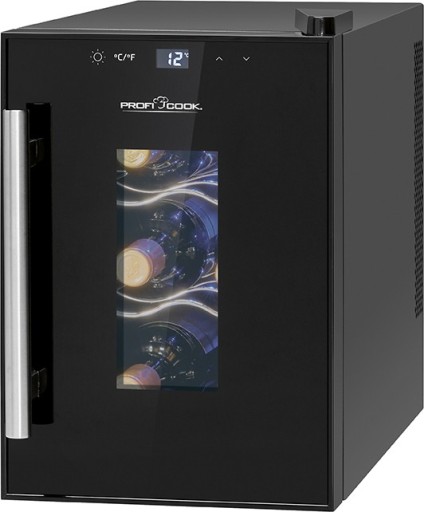 ProfiCook PC-WK 1230 to kompaktowa lodówka do wina która jest doskonałym wyborem dla każdego, kto chce w sposób efektowny przechowywać i chłodzić wino. Urządzenie działa w oparciu o technologię termoelektryki, bez użycia kompresora. Szklany, przezierny front z filtrem UV oraz podświetlenie wnętrza sprawia, że jest ona doskonałym uzupełnieniem eleganckiej kuchni, pokoju hotelowego czy baru.