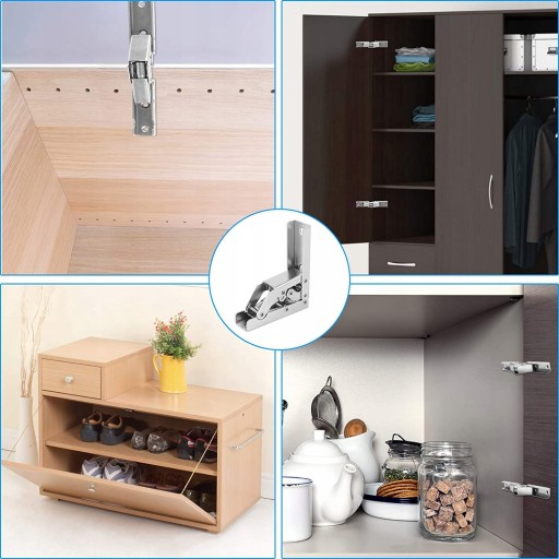 Materiał premium: składany wspornik zawiasu półki wykonany jest z zaawansowanej stali walcowanej na zimno o wysokiej twardości, dobrej odporności na rdzę i korozję. Wykonanie jest w porządku, powierzchnia jest gładka, więc nie porysuje mebli ani skóry.