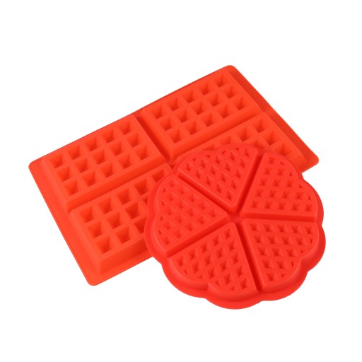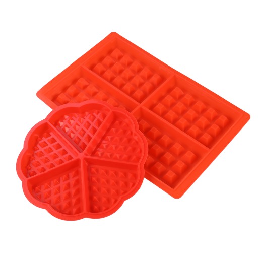 ✅1 * zestaw Silikonowe formy do gofrów Narzędzie do pieczenia Kształt wafla Foremka do czekolady Kwadrat i kształt serca (czerwony)