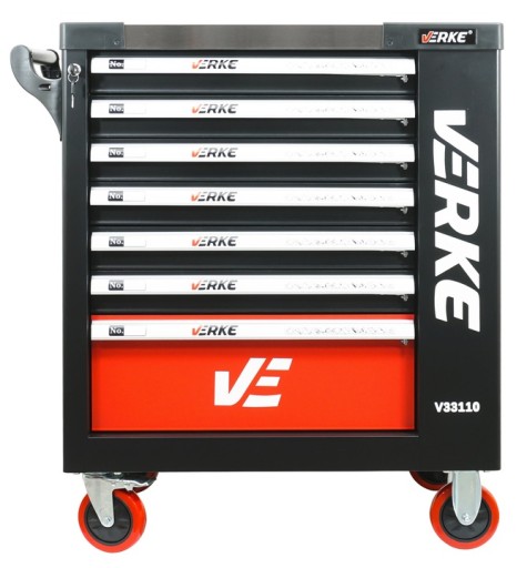 4 solidne kółka jezdne w tym 2 skrętne, ułatwiające manewrowanie szafką. Wózek warsztatowy jest wyposażony w mocny hamulec, za pomocą którego możemy zatrzymać szafkę w ustalonej pozycji.