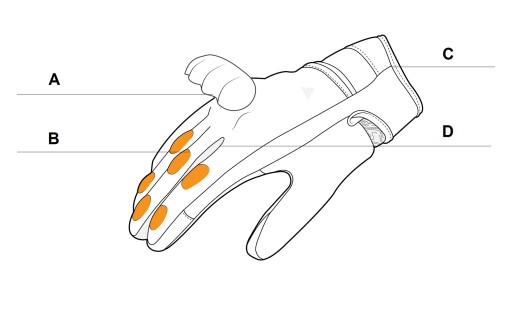 - na wewnętrznej stronie dłoni model SHADOW TFL posiada specjalne przetłoczenia dla łatwiejszego i bardziej precyzyjnego operowania manetką,