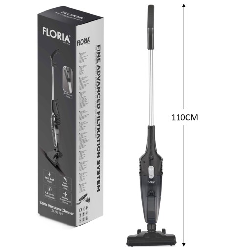 Odkurzacz FLORIA zaprojektowany został z myślą o szybkim i wygodnym sprzątaniu całego domu. Możesz za jego pomocą odkurzać w pozycji pionowej lub ręcznie - wystarczy jedynie odpiąć odkurzacz od drążka. Łatwy do odłączania moduł ręczny pozwala na dokładne czyszczenie miejsc położonych wyżej oraz różnych rodzajów, nawet bardzo trudnodostępnych powierzchni.