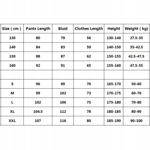 Proszę zapoznać się z naszą tabelą rozmiarów przed złożeniem zamówienia