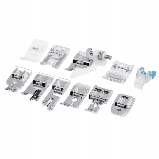 Ten zestaw zawiera 11 sztuk stopek dociskowych z różnymi funkcjami, takimi jak stopka do ściegu prostego, stopka do zamków błyskawicznych, stopka do pikowania 1/4 itp., spełniająca różne potrzeby. Te stopki dociskowe są praktycznymi częściami maszyn do szycia, dzięki czemu szycie jest płynne i wysoce wydajne.