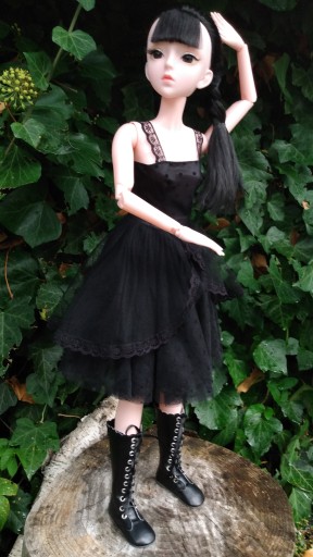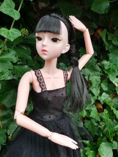Laleczka posiada ruchome stawy w kończynach co pozwala na kreowanie różnorakich pozycji. Długie, kruczo czarne włosy - można zmienić fryzurę oczywiście :)