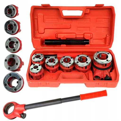 Zestaw narzynek o dużych rozmiarach przydatny każdemu hydraulikowi. Gwintownice są wykonane z bardzo mocnej stali, pozwalają na gwintowanie rur z twardej stali. Solidna niezawodna grzechotka sprawia że zestaw jest zawsze gotowy do pracy.