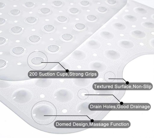 ANTYPOŚLIZGOWA - Łazienkowa mata antypoślizgowa o wymiarach 70 x 35 cm. Sprawdzi się pod prysznicem, w brodziku lub wannie. Mocno przylega za pomocą przyssawek.