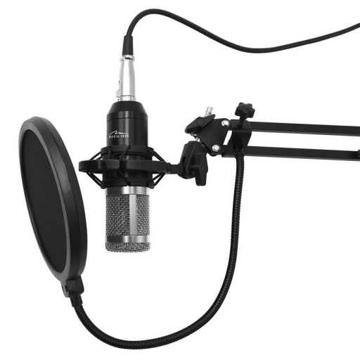 - Akcesoria w zestawie: Gąbkowa owiewka Składany stojak metalowy z uchwytem do krawędzi stołu Koszyk antywibracyjny Pop filtr na elastycznym ramieniu Profesjonalny kabel XLR 240cm XLR z wtyczką minijack 3,5mm Karta dźwiękowa USB (zgodność z Windows 8/10 32/64 bit)
