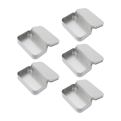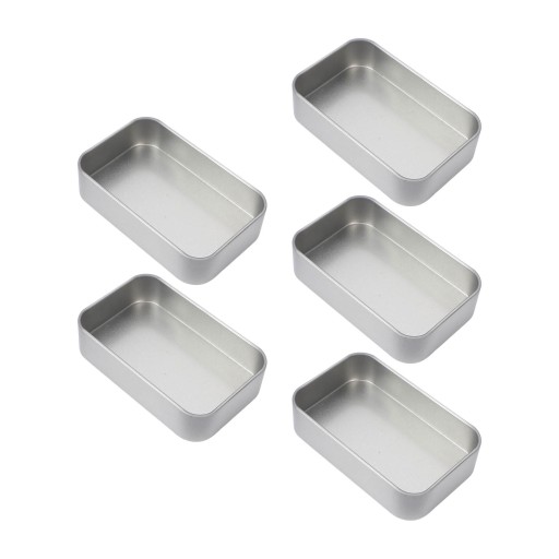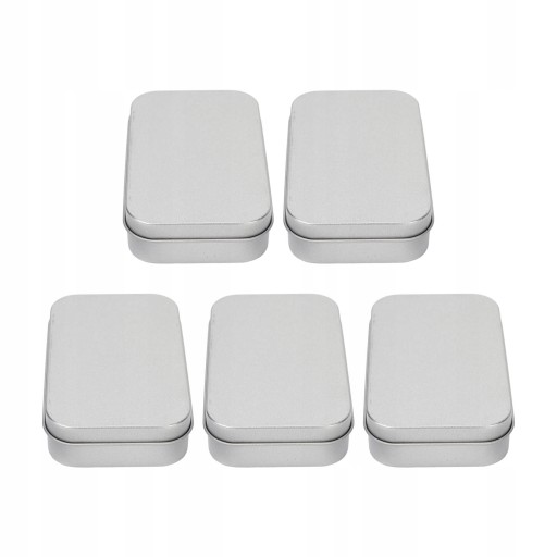 PROSTOKĄTNE PUSTE PUDEŁKO MAŁE POJEMNIKI METALOWE Z POKRYWY 5 SZTUK