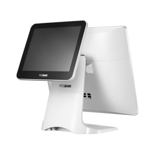 Piękny biały Poleasingowy w idealnym stanie Terminal Dotykowy POS z systemem operacyjnym Windows Posready7. Urządzenie posiada dodatkowo ekran dla klienta (15 calowy)