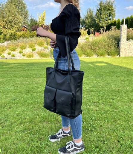 Klasyczny fason sprawia, że torebka jest idealna do noszenia na co dzień. Solidna i funkcjonalna, idealnie sprawdzi się jako torba na zakupy lub na uczelnię. Zamykana na zamek błyskawiczny. Dodatkowo posiada dwie kieszonki na przodzie zapinane na magnes. Świetnie pasuje do codziennej stylizacji.