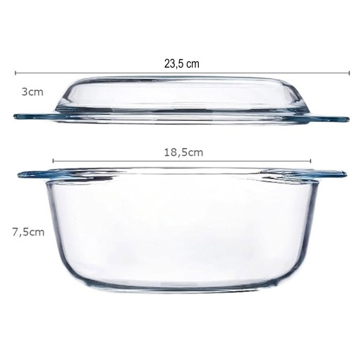 Funkcjonalne naczynie żaroodporne okrągłe z pokrywą do zapiekania o pojemności 1,5L. Idealne do przygotowywania różnego rodzaju potraw m.in. zapiekanek czy pieczeni. Wykonane z najwyższą dbałością o szczegóły, odporne na temperatury od -40°C do aż 450°C. Dzięki użytym materiałom borokrzemianowym może być bez problemu myty w zmywarce, używany w mikrofali bądź w lodówce.