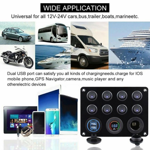 - Nadaje się do łatwej instalacji w pojeździe, jachcie, statku, przyczepie kempingowej, ciężarówce itp. o napięciu 12 V i 24 V.