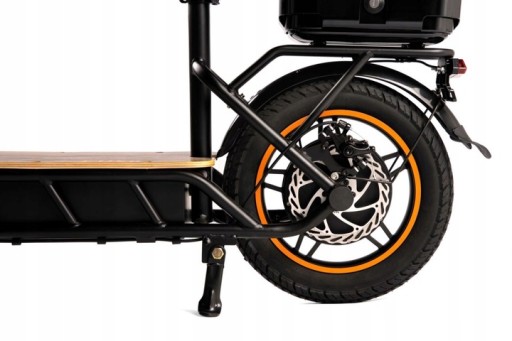 Skrzynka do przechowywania siedzącego i antypoślizgowe pedały z litego drewna, aby zapewnić odpowiedni komfort jazdy.