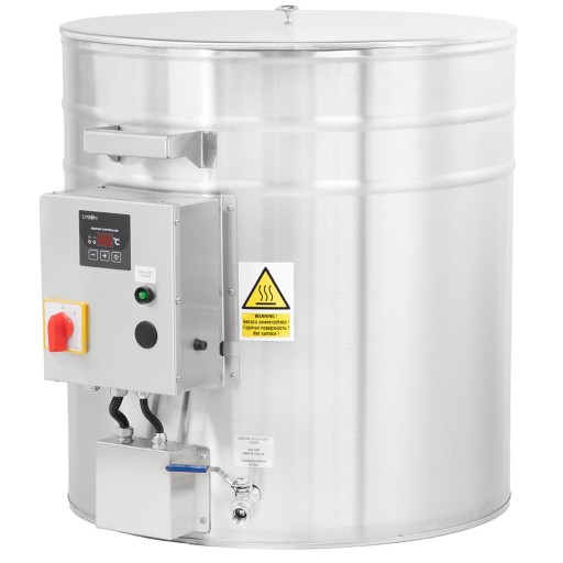 Urządzenie to jest stosunkowo proste w obsłudze. Do zbiornika wlewamy wodę do wysokości górnego zaworu kulowego. Do wody wrzucamy kawałki wosku i uruchamiamy topiarkę ustawioną na 80°C. Gdy zakończy się proces oddzielenia wosku od zanieczyszczeń, odkręcamy dolny zawór kulowy. Będzie przez niego wypływać zanieczyszczona woda, a następnie pokaże się płynny wosk. Wówczas zamykamy zawór dolny i podstawiamy czyste wiaderko z sitem pod zawór spustowy wosku (górny). Tym sposobem uzyskujemy czysty płynny wosk, który możemy odstawić na kilka godzin do zbrylenia lub od razu wykorzystać np. do produkcji świec.