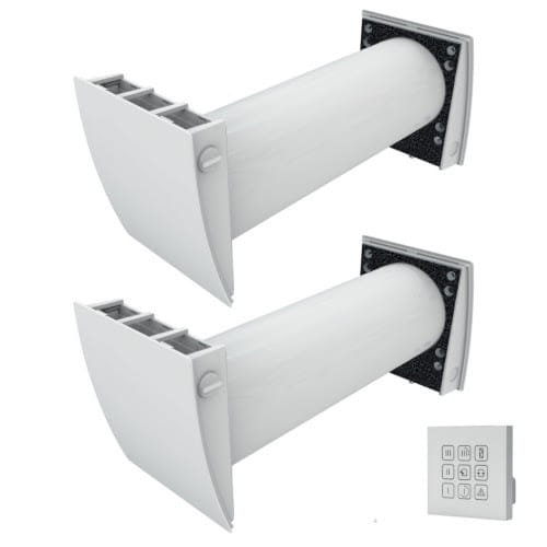 VENTO ECO2 A50-4 S11 Pro - DWIE jednostki wentylacji decentralnej z ceramicznym, higroskopijnym wymiennikiem ciepła i wylotem zewn. AH-11WHITE160 + 1 szt. regulatora