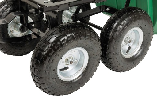 Wózki ogrodowe wyposażone zostały w skrętną oś, która zapewnia łatwe manewrowanie nawet przy bardzo dużym obciążeniu. Dzięki zastosowaniu stalowych materiałów konstrukcyjnych mamy pewność, że oś i cała konstrukcja wózka wytrzyma duże obciążenia.