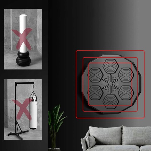 - Podświetlenie wyświetla na ścianie cel i pozycję uderzenia, a podążanie za rytmem ćwiczeń uderzeniowych może ćwiczyć koordynację wzrokowo-ruchową i umiejętności reakcji.