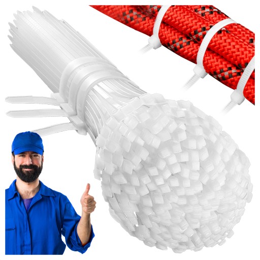 BIAŁY KOLOR - DŁUGOŚĆ: 200 mm - SZEROKOŚĆ: 2,5 mm - DUŻA ODPORNOŚĆ NA ZRYWANIE I DZIAŁANIE UV - WYKONANE Z NYLONU