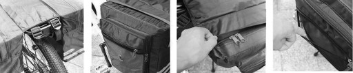 Torbę montuje się do bagażnika za pomocą solinych pasów