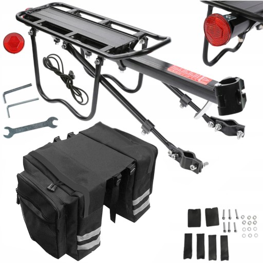 ZESTAW: BAGAŻNIK ROWEROWY TYLNY 50KG + TORBA ROWEROWA PODWÓJNA!