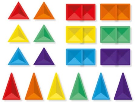 Przeglądaj kształty i kolory zarówno w 2D, jak i 3D. Poznaj charakterystyczną dla Connetix konstrukcję skośną oraz mocniejsze magnesy, budując wyżej i ciesząc się wyraźniejszymi załamaniami światła. Odkryj nowe możliwości kreatywności, projektowania i budowania – w tym rakiety, lody, domy, kwiaty, dinozaury, zwierzęta, pejzaże miejskie, łodzie i mandale.