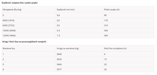 - Uciąg w poślizgu: 12000 lbs [5443 kg]