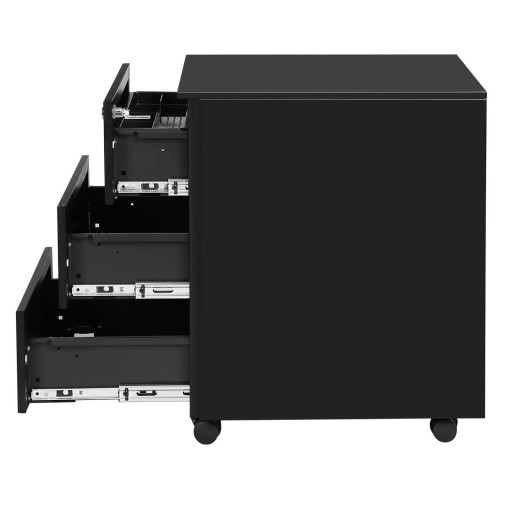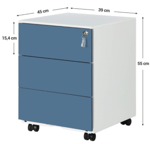 Zamykany kontenerek biurowy na kółkach ma trzy szuflady, które zapewniają miejsce do przechowywania dokumentów, szafek, folderów i nie tylko. Ogromną zaletą tego pojemnika są kółka, dzięki którym produkt jest bardzo łatwy w obsłudze.