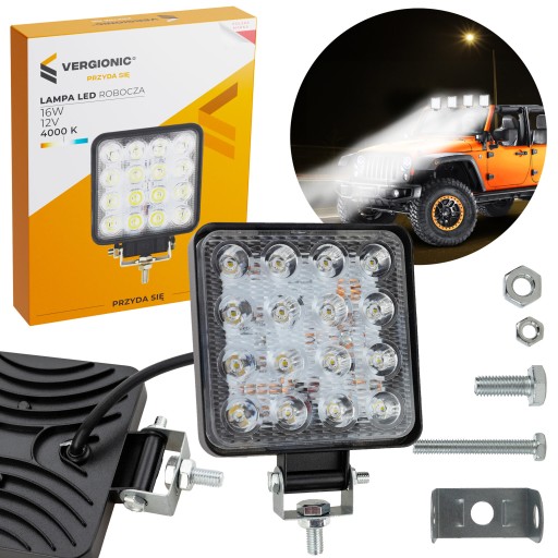 РАБОЧАЯ ЛАМПА 16 LED ГАЛОГЕННАЯ 16 Вт 12 В LED