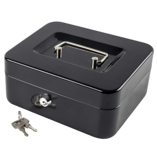 Metalowa kasetka, sprawdza się gdy chcemy przechować pieniądze lub inne wartościowe przedmioty takie jak np: biżuteria czy dokumenty.