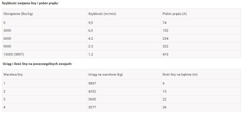 - Uciąg w poślizgu: 13000 lbs [5897 kg]