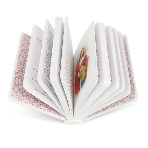 Książeczka w twardej, białej oprawie, zawiera szereg modlitw, przygotowanie do Komunii Świętej, pieśni, nabożeństwa. Wyposażona w tasiemkę umożliwiającą zaznaczenie strony. Czcionka duża, czytelna. Druk w kolorach: czarny i czerwony ułatwia korzystanie z książeczki. Modlitewnik zawiera także kolorowe ilustracje.