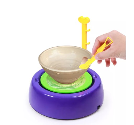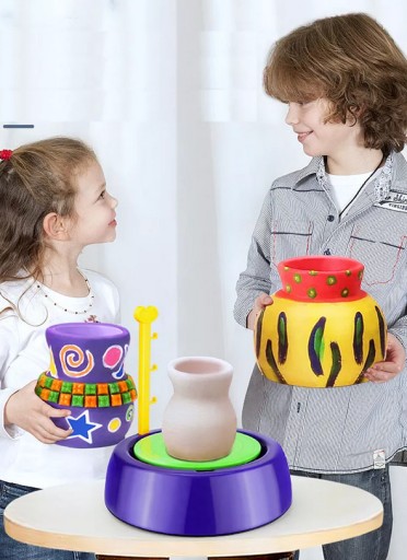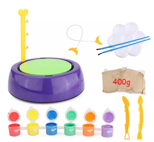 Zestaw koło garncarskie to idealny pomysł na kreatywną zabawę. Ten świetny zestaw skutecznie zajmuje wiele długich godzin i pozwala na realizowanie naszych pomysłów. Rozwija wyobraźnię, kreatywność, zdolności manualne, wyobraźnię. Stwórz artystyczną ceramikę. Zestaw rzeźbiarski z kołem garncarskim pozwala na tworzenie własnoręcznie wykonanych kubeczków, dzbanków oraz wiele innych form z gliny. Do zestawu zostały dołączone również farby i niezbędne narzędzia, dzięki którym po stworzeniu bryły możemy dodatkowo je ozdobić. Zestaw ten pozytywnie wpływa na zdolności artystyczne. W produkcie jest umieszczony przełącznik z dwoma prędkościami do obracania platformy. Dzięki tak kreatywnej zabawce dziecko może własnoręcznie stworzyć prezent dla bliskiej osoby np. talerzyk, kubeczek i dodatkowo je ozdobić.