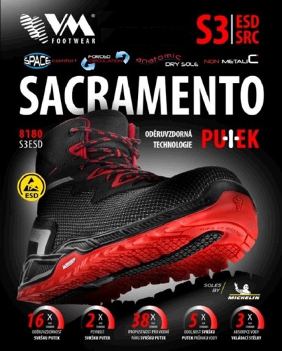 Trzewiki bezpieczne MICHELIN SACRAMENTO S3 z podszewką oddychającą.