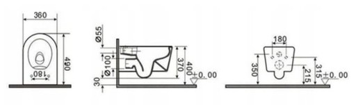 Muszla wykonana jest z ceramiki sanitarnej w kolorze białym. Jej rozmiar pozwala na optymalne wykorzystanie przestrzeni, a innowacyjny system Rimless zapewnia funkcjonalność. W komplecie z muszlą dołączona jest deska wolnoopadająca STANDARD wykonana z duroplastu, posiadająca metalowe zawiasy.