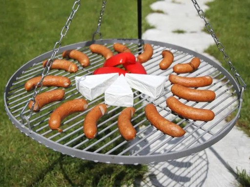 Masywny ruszt do grilla wykonany jest ze stali naturalnej o grubości pręta 5 mm. Wyprodukowany jest on ręcznie z dbałością o detale. Idealnie komponuje się z trójnogiem tworząc w całości zestaw grillowy. Jego powłoka nie jest pokryta żadnymi chemicznymi farbami. Stal, z której wykonany został ruszt jest dopuszczona do kontaktu z żywnością, dzięki czemu produkt jest całkowicie bezpieczny dla zdrowia. Solidna konstrukcja rusztu zapobiega wyginaniu się produktu pod wpływem temperatury. Ogromny ruszt pozwoli na przygotowanie potraw grillowych dla licznej grupy osób.