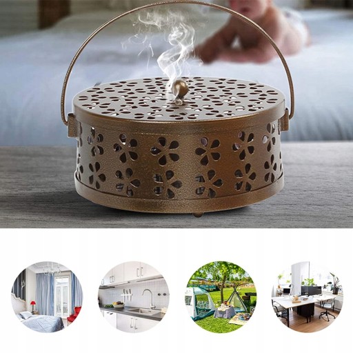 pojemnik na spiralę w stylu vintage, ruchomy uchwyt na szpulę na komary do ogrodu, na kemping, na zewnątrz ze szczotką do czyszczenia