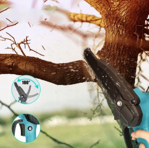 ⚡ Mini akumulatorowa piła łańcuchowa jest idealna do użytku na zewnątrz, w ogrodzie, w sadzie a także we wszystkich pracach działkowych. Potniesz nią gałęzie, obrobisz drewno, uporządkujesz całą działkę.