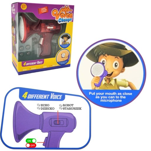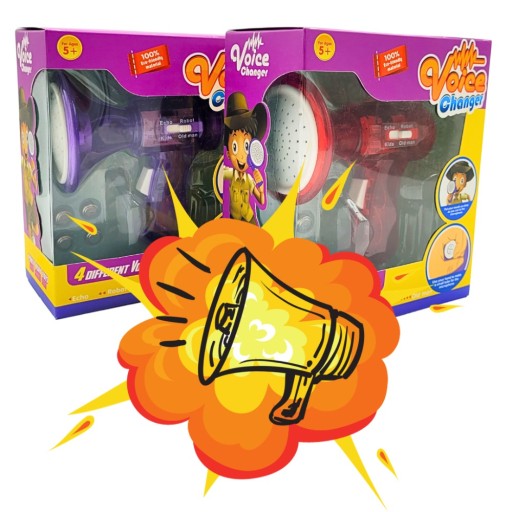 ZABAWNA ZABAWKA ZMIENIACZ GŁOSU - MEGAFON MODULATOR z czterema różnymi zabawnymi głosami. BATERIE w ZESTAWIE. UDANA ZABAWA GWARANTOWANA.
