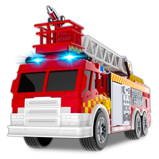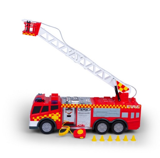 Duży samochód straży pożarnej odwzorowany z dbałością o najdrobniejszy szczegół. Pojazd wyposażony jest w pachołki, ruchomą, rozkładaną drabinę, mikrofon, a nawet zbiornik na wodę, który zasila najprawdziwszą armatkę wodną! To jeszcze nie wszystko. Mały strażak znajdzie tu także realistyczne odgłosy oraz światła ostrzegawcze, które uatrakcyjnią zabawę.Pojazd przeznaczony dla dzieci od 3 roku życia. Cechy zabawki: światło,dźwięk,zbiornik na wodę zabawka posiada armatkę wodną,mikrofon.