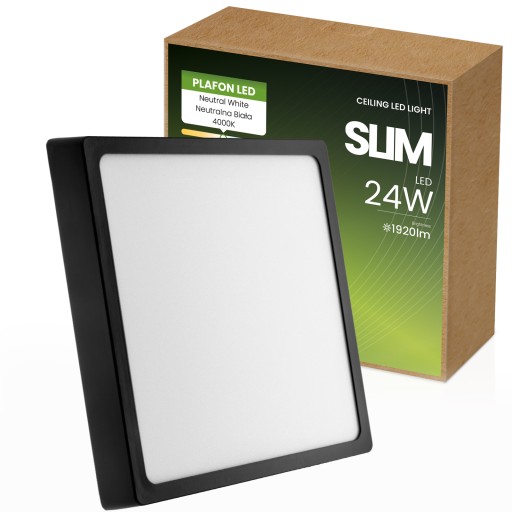 Nadaje się najlepiej do pomieszczeń, w których spędza się najwięcej czasu( do nauki lub pracy). Nowoczesny plafon LED o wymiarach 27x27x2,7 cm w czarnym kolorze charakteryzuje się energooszczędnym i wysokowydajnym źródłem światła LED o mocy 24W, a jego strumień świetlny emitowany jest na poziomie 1920lm.