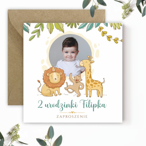 ZAPROSZENIA NA URODZINY W JAKOŚCI PREMIUM Z MOTYWEM SAFARI I ZDJĘCIEM SWOJEGO DZIECKA