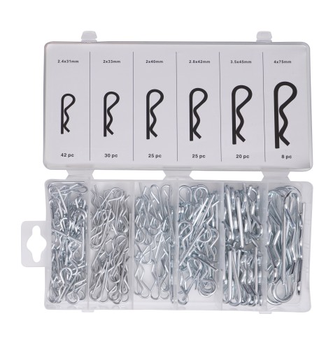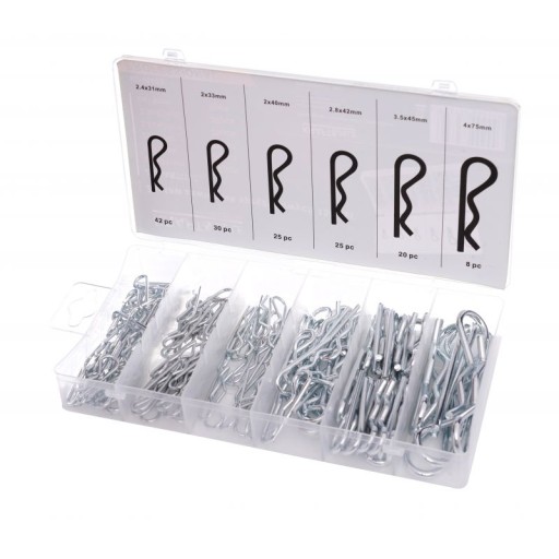 Profesjonalny zestaw zawleczek sprężynowych marki Kraft&Dele model KD10482 stosuje się do zabezpieczenia przed zsuwaniem się elementów umieszczonych na wałkach, osiach, trzpieniach lub śrubach itp.