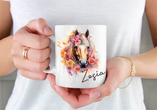 ZESTAW 3 PRODUKTÓW: poduszka + kubek + worek z KONIEM boho kwiaty + dowolne imię