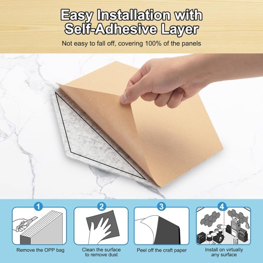 Łatwy w montażu. Samoprzylepny z tyłu, bez innych narzędzi, wystarczy oderwać folię ochronną, aby nałożyć. Dzięki ultracienkiej grubości warstwy kleju, panel akustyczny, warstwa kleju i ściana mogą być ze sobą trwale połączone, dzięki czemu nie musisz się martwić o podniesienie krawędzi panelu lub odpadnięcie paneli ściana. Można go bezpiecznie zainstalować na dowolnej powierzchni.