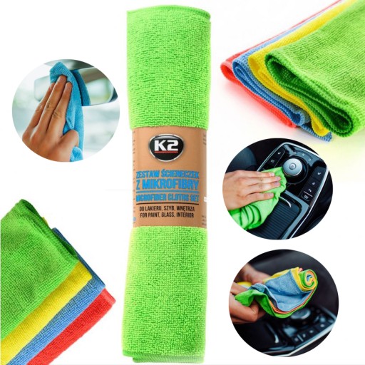 - K2 MIKROFIBRY, 4 szt. - posiadają szeroki wachlarz zastosowań: czyszczenie deski rozdzielczej i plastików wewnątrz auta, szyb, lusterek i wyświetlaczy, tapicerki.